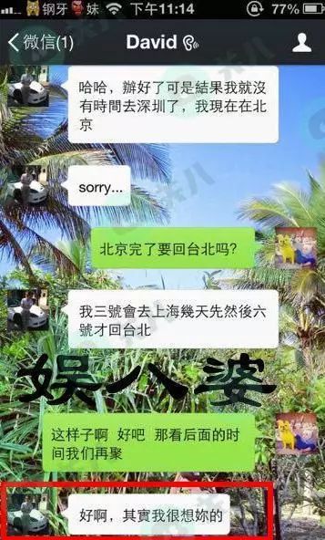 之后两人的关系迅速升温,陶喆开始称杨子晴“宝贝”,还多次说“想你”“很想你”“好想你”。