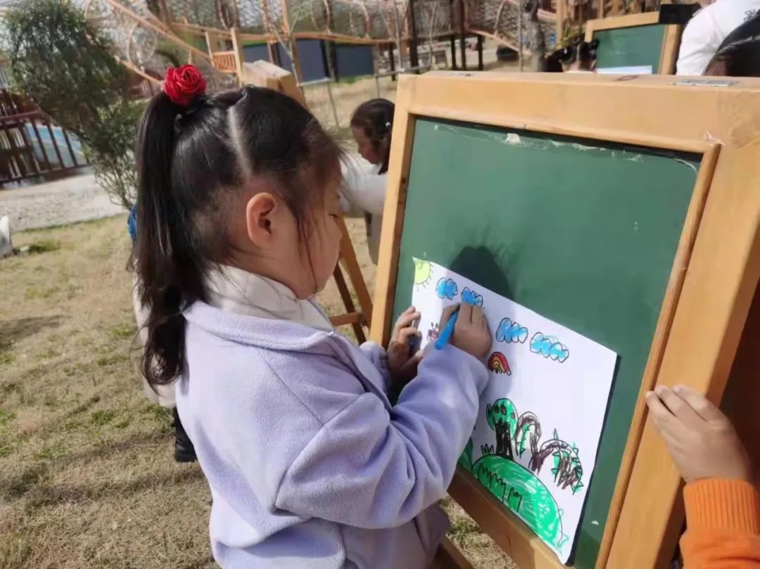 一个个专注惊奇的小眼神里满是对春天的喜爱,感受着大自然给人们带来的喜悦和芬芳。不一会儿,一幅幅春景图跃然纸上。