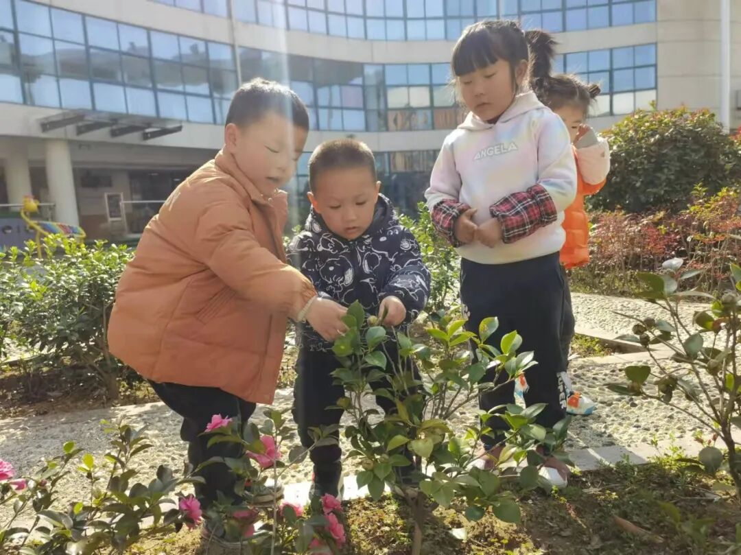 嫩绿的叶子、含苞待放的花苞让孩子们在欣赏的同时情不自禁地用手去触摸它们,用鼻子去闻一闻它的花香,一张张笑脸也和花儿一样美丽。