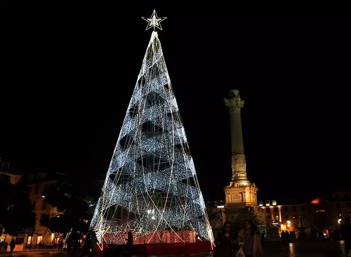 葡萄牙里斯本罗西欧广场的圣诞树,透着一种简约之美。