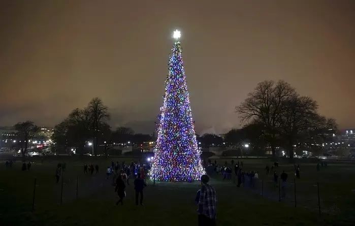 今年美国白宫外的国家圣诞树,由总统奥巴马亲自点亮!