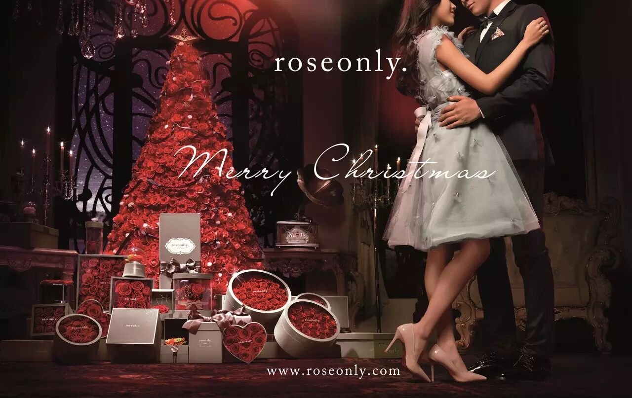 由厄瓜多尔最美玫瑰园里的娇艳玫瑰组成的roseonly圣诞树下,堆满了roseonly经典礼盒!