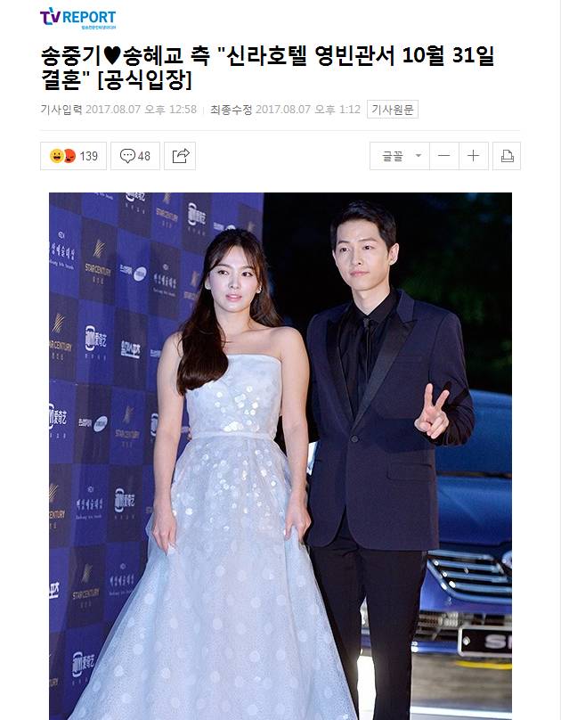 而在今天中午有韩媒报道,宋仲基宋慧乔的婚礼举办地点订在了首尔新罗酒店~