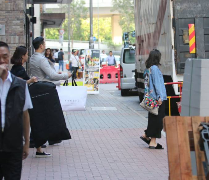 最后,胡杏儿自己过马路上车,非常潇洒,留下老公一个人左顾右盼。