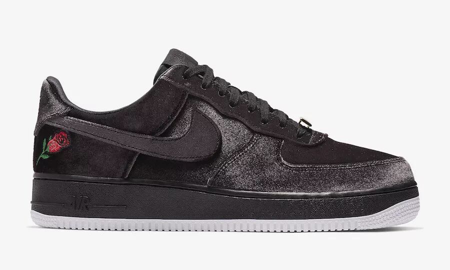 Nike 最近推出了一款全新的丝绒Air Force 1,用经典的黑白色呈现,鞋后跟注入了刺绣的玫瑰花图案,以及鞋带扣的2018字样点缀。据悉,它会于 11 月 24 日在 Nike 零售商和Nike官网发售,官方售价在 130 美元。