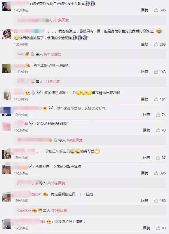 至此,张馨予怀疑自己似乎是被骗了,于是发布了微博。