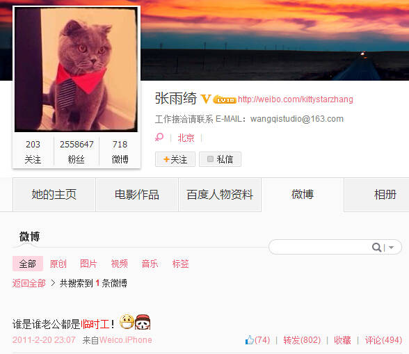 她在11年的时候,还发了一条微博:谁是谁老公,都是临时工。
