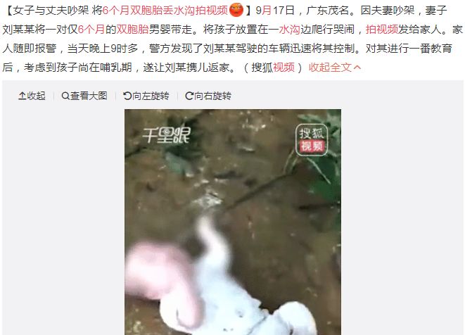 前些日子,一则夫妻,将6个月双胞胎孩子丢进水沟的视频在网络上疯传。