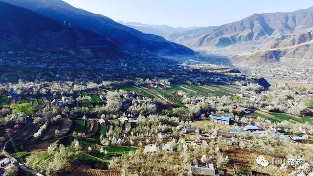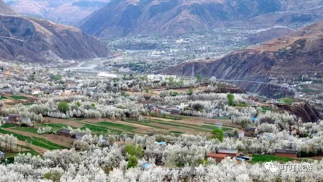 每年3月底万亩梨花绽放,绵延百余公里的大金川河谷两岸漫山遍野的梨花与蓝天、白云、麦地、河流、民居、碉楼等共同描绘出一幅幅宛若图画的“世外梨源”风光。