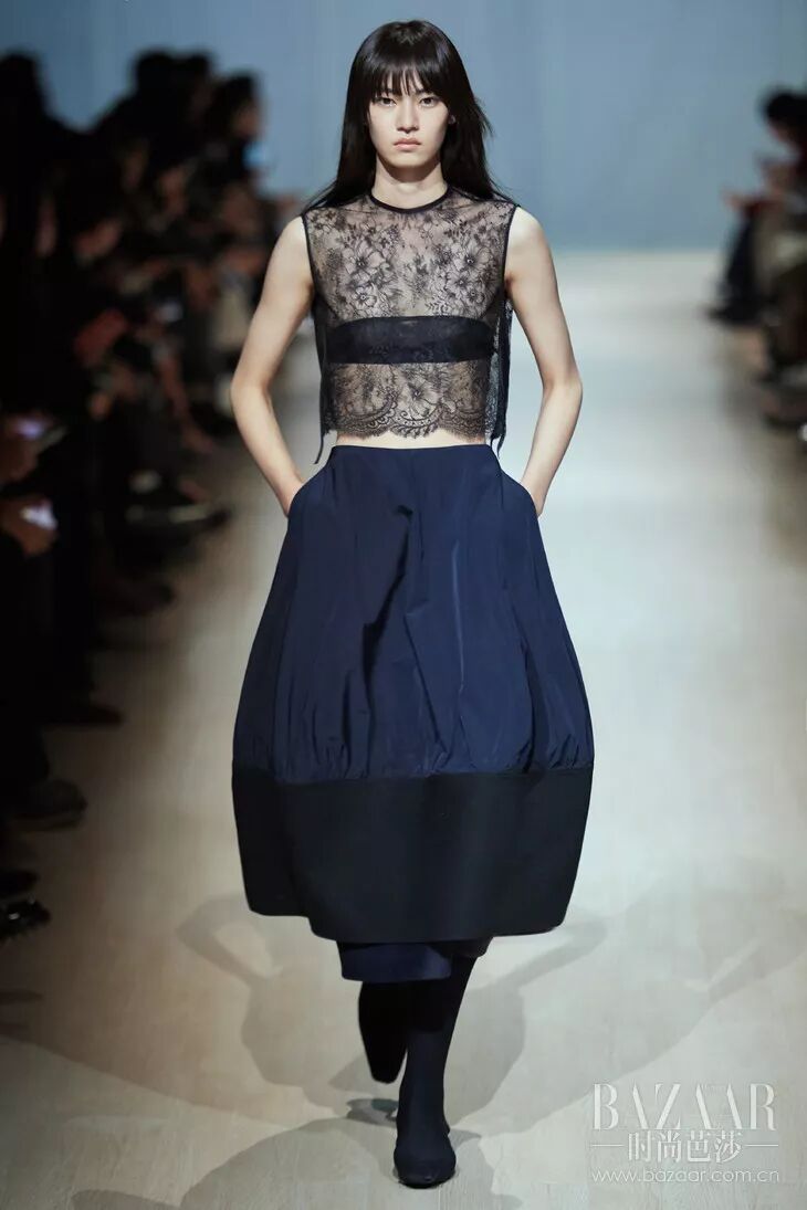 Adriana Lima一身黑白mix气场全开,今年天使们好像尤其钟爱不对称剪裁~秀出完美线条的同时又多了份独特。