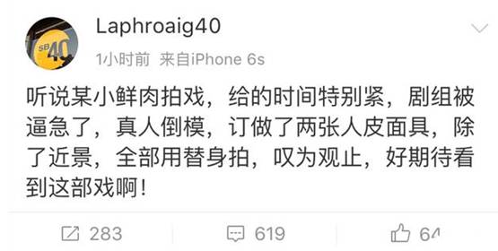 不久前她在微博上回复某博主“某小鲜肉真人倒模、人皮面具拍戏”的言论,称“最后发现比真人演得还好吧”~