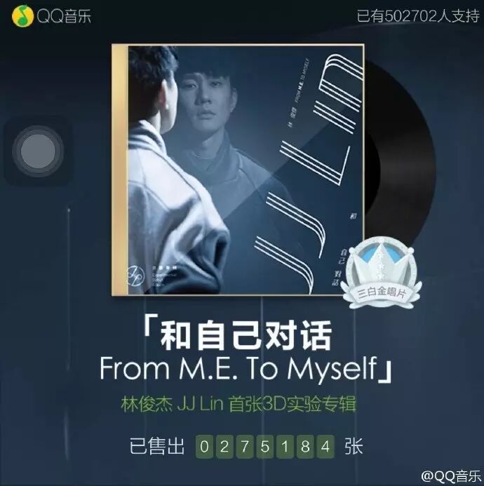 。◕‿◕。 不仅如此,『和自己对话』实验概念专辑更是于近日获得QQ音乐数字专辑等级认证,QQ音乐以专辑真实销量为依据的等级认证体系,公平公正地认证专辑等级,对JJ林俊杰的最新实验概念专辑《和自己对话 From M.E. To Myself》根据销量认证为【三白金唱片】!而且销量还在持续增长中!让我们期待这张实验概念专辑再创销量神话!