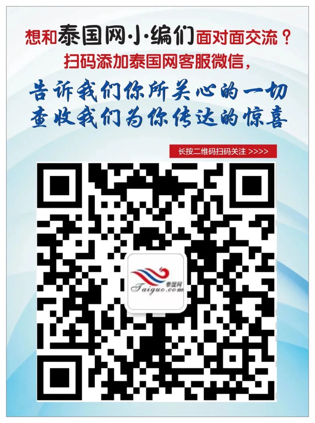 功能介绍:泰国新泰日报旗下新媒体:泰国中文资讯。泰国中文商务信息发布平台、求职招聘平台;前沿的旅游信息平台,欢迎关注!泰国网·知泰国www.taiguo.com 客服电话:02-693-8559