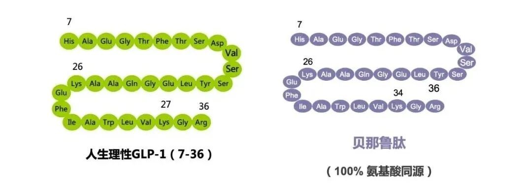 贝那鲁肽是目前唯一一款100%全人源的GLP-1减重制剂,氨基酸序列和人体完全同源,通俗点说就是身体的 “自己人”。