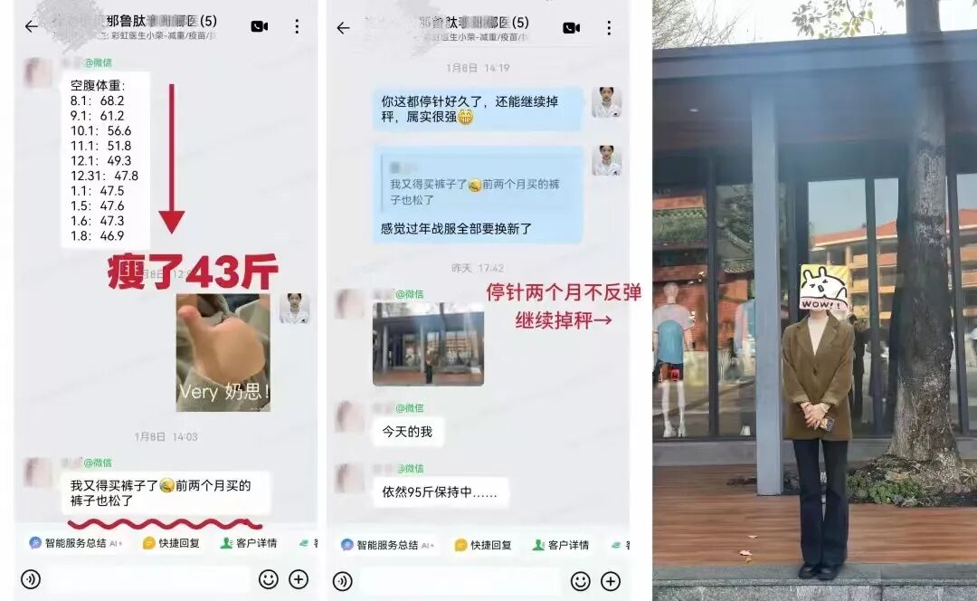 在这里跟大家推荐“彩虹医生”,成立十年的大平台,累计服务了20万+减重用户,全国一、二线城市开设60+正规医疗门诊。每一支从这里发出的针剂,都可以扫码溯源。