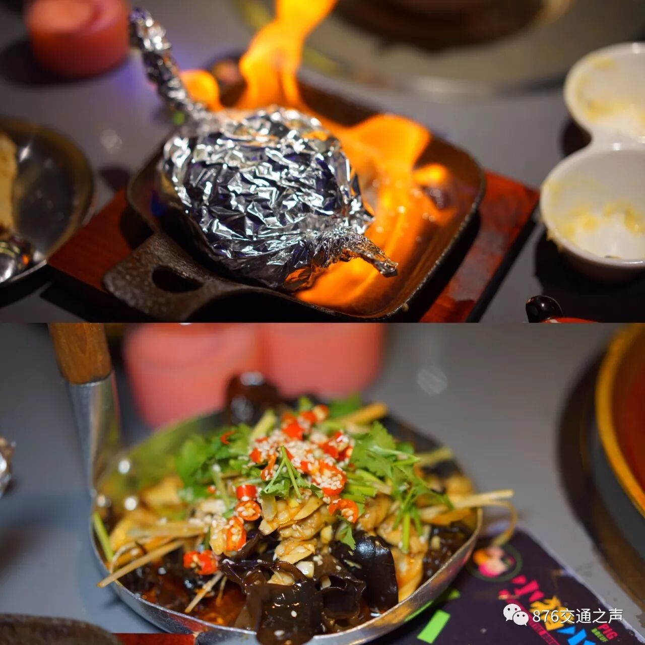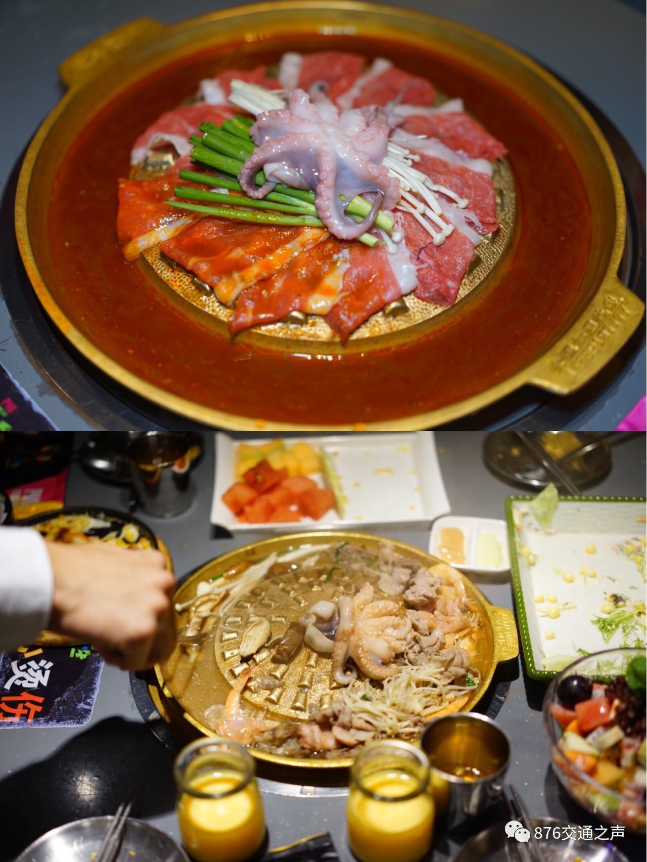 ▲水煎肉使用定制的铜锅,锅的中间是煎盘,