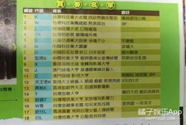这份卖淫名单里,除了有Z、S、L、W女星等百名女艺人、小模之外,还竟然有40偶像剧男演员、民意代表,及企业老板的买春者名单。