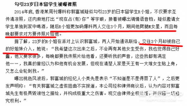 爆料的是一位R小姐,据说是日本留学生,她爆出了一系列和郭富城的聊天记录,尺度好大!