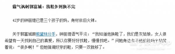 想想之前和熊黛林分手的时候,郭天王给出的理由是鞋不合脚...
