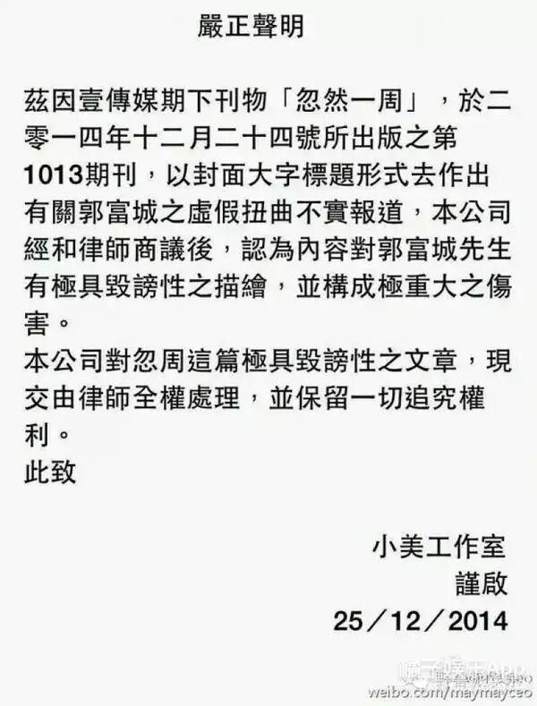 之后郭富城的经纪人小美还发了声明,也算是给这事儿画了个句点...