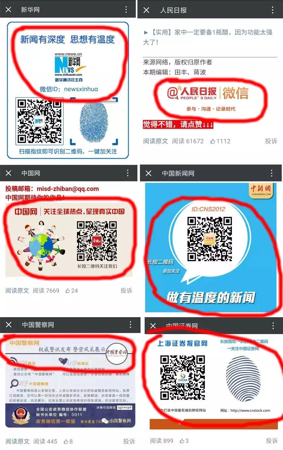下列人民日报、中国网、新华网、中国新闻网、中国警察网、中国证券网等微信公众号,均带有体现自身定位及属性的签名模板。