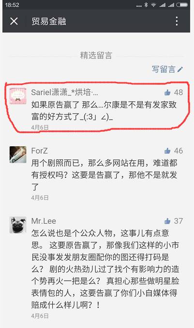 在上百万转载频次的数字面前,我们无理由不怀疑,原告所谓的维权行为存在一定的诉讼目的。事实上,在《摊上事儿了,被霍建华告了是什么感觉》这篇文章推出后,小编在后台收到拥有共同遭遇的自媒体人士的留言,同一原告同一理由。(个中缘由各位自己脑补吧)。