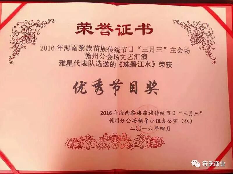 2016年参加儋州市中小学生舞蹈比赛荣获第一名