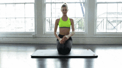 骆驼式拉伸。锻炼部位:腹直肌、腹外斜肌。