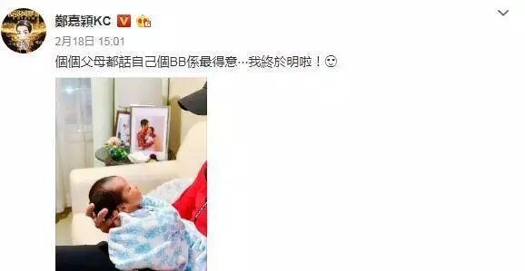 陈凯琳怀孕后,郑嘉颖急切的心情更是掩饰不住,几次晒出为儿子准备的衣服和网球拍,期待儿子的出生。