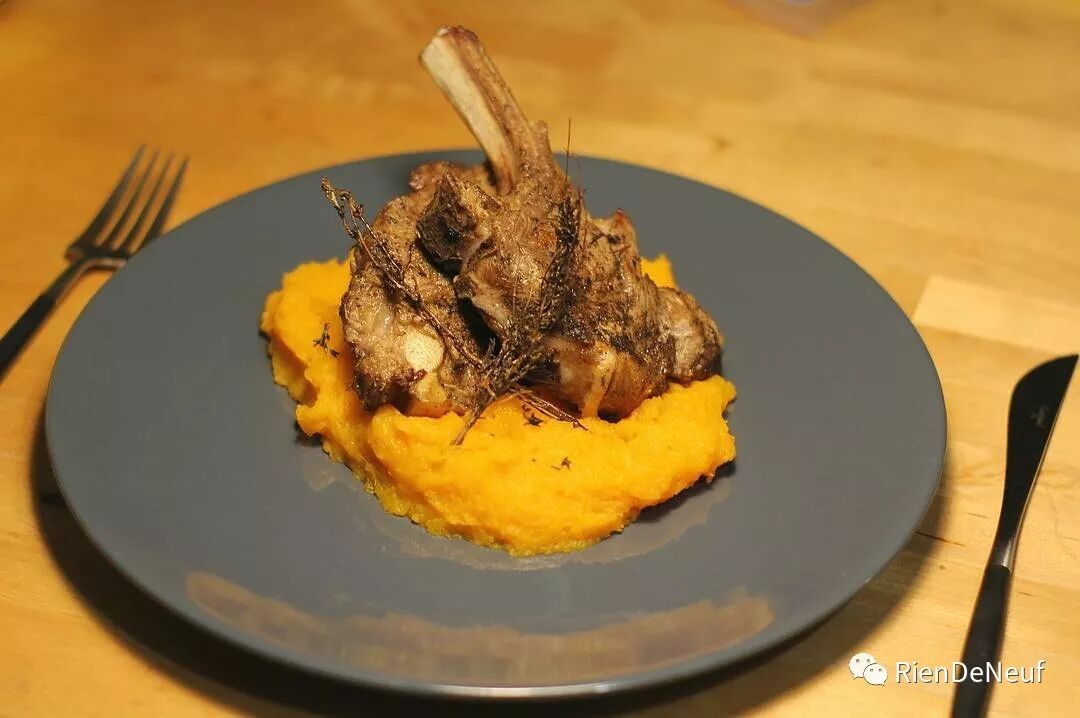 灵感来源于之前和小张吃过一道菜,大概思路就是羊肉+根茎类蔬菜。但是又不想吃土豆,就换成了butternut南瓜。捣成泥加一点盐和黄油拌匀,口感绵密顺滑,味道清甜,也不至于太过扎实。比土豆不知道高到哪里去了!吃了一碗,再来三碗。