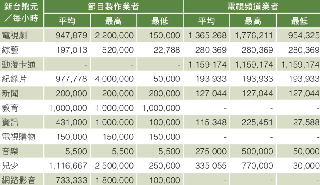 《台湾影视产业数据统计表》