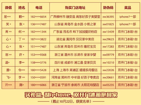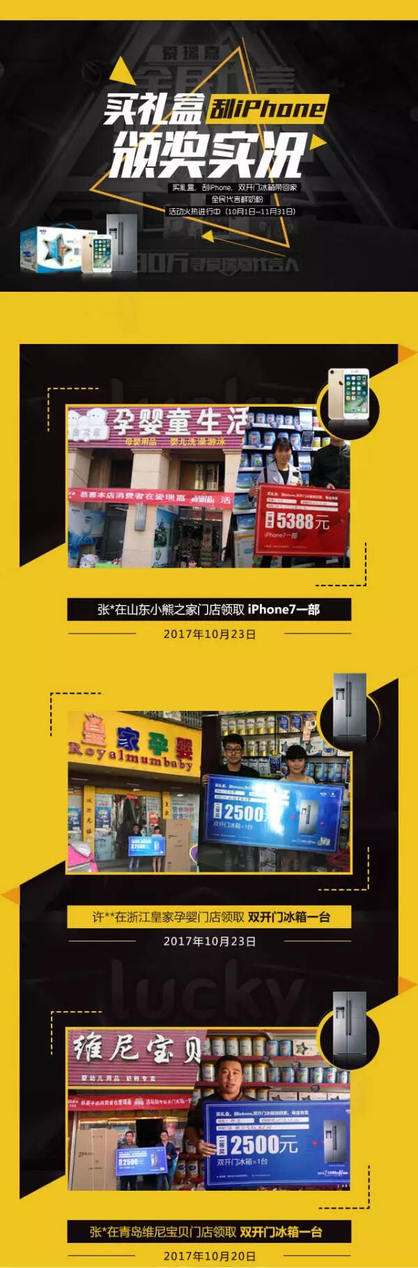 还有3台iphone7、12台双开门冰箱、421听鲜奶粉等你来!