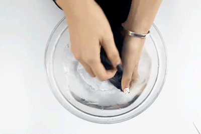 用最深的黑色进行水洗测试,在水中揉搓15分钟仅有轻微浮色: