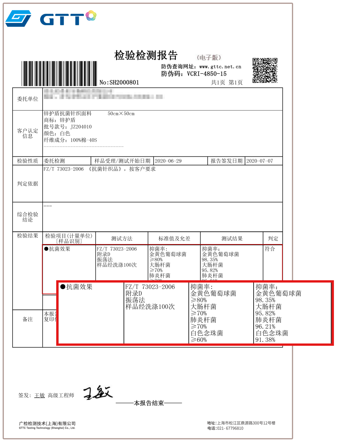 面料使用了一种特殊工艺,链入锌离子(从植物种萃取)