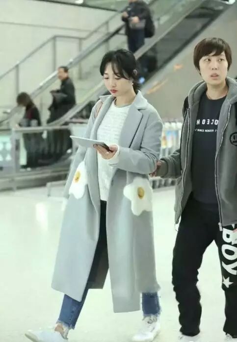 白百何也是大一爱好者之一,穿上一双百搭小白鞋,再来一条磨边牛仔裤。不不不,重点看这两个煎蛋。真让她抢足了镜。