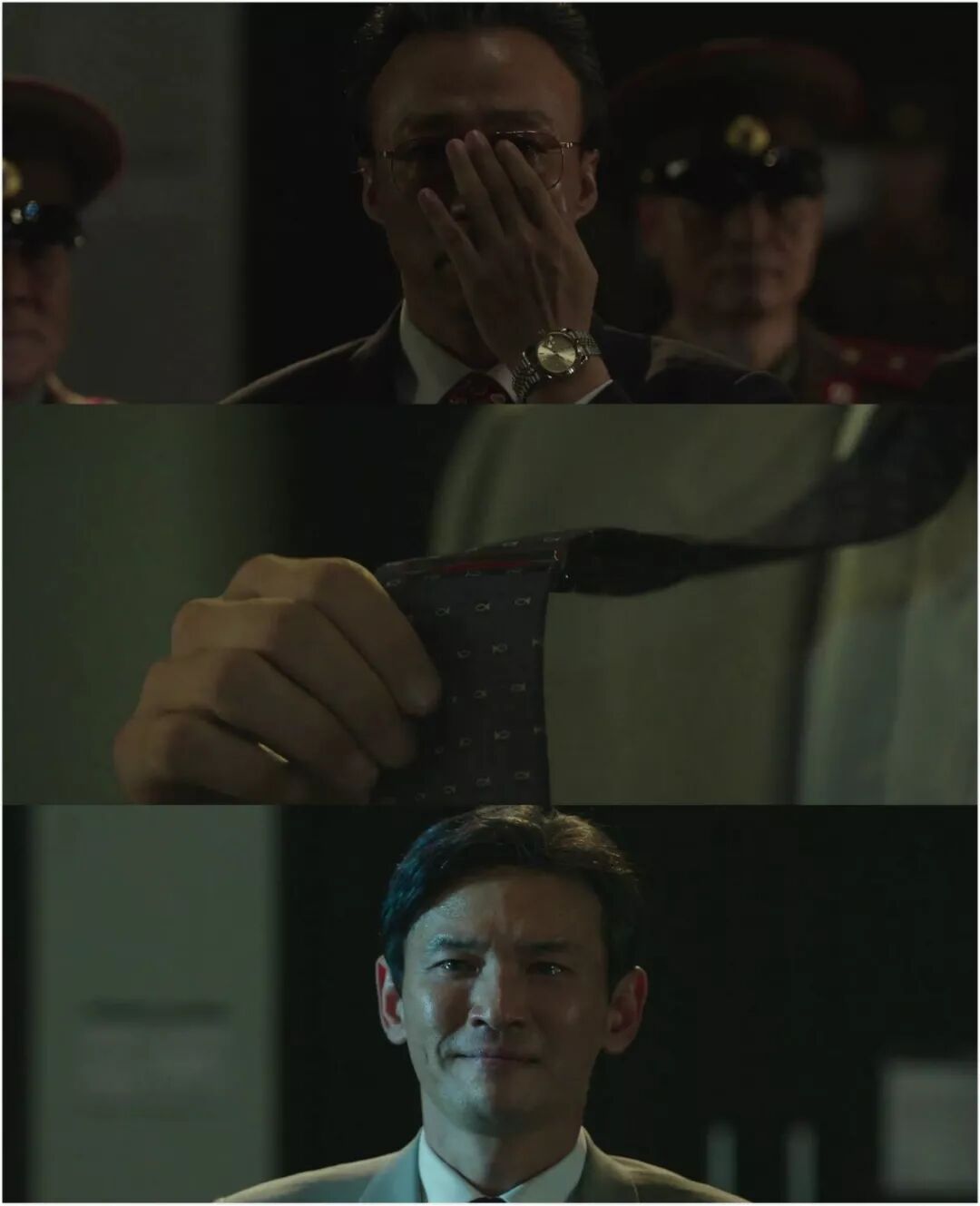 在人群之中的朴皙映展示了不少来自特工的“人格分裂”,比如像在与李处长的鸿门宴上,碰撞碟子的声音完美覆盖了录音机翻面的响声,极其精彩。
