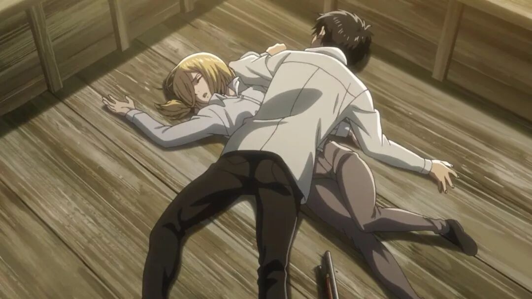 更迷的是,艾伦和希斯托莉娅被抓的时候,设计了一个倒在一起的画面,一股官方默认CP的奸情味道。