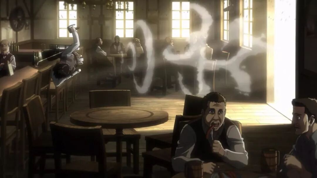 兵长闯进酒吧的尾迹,秘之放屁。