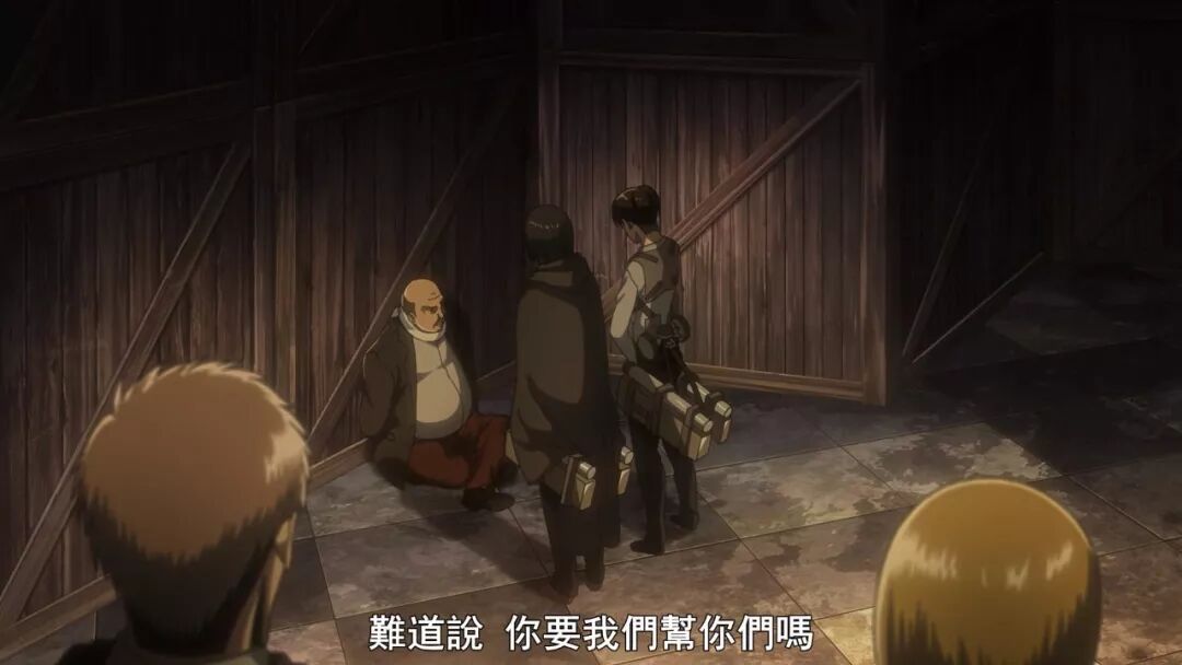 兵长和商会的谈判合作,被放在了艾伦和女王被抢走之后,回头再利用他们去追查下落,这次序一变,智斗的水准就降了,兵长由主动出计策,变成被动地被推着想办法。谈判也是赶车一样完成,场景从城墙上改到室内,环境气氛大减,对话内容也是删得够狠。本来这场戏很是能展现兵长地下出身的世俗智慧,以及人格魅力。