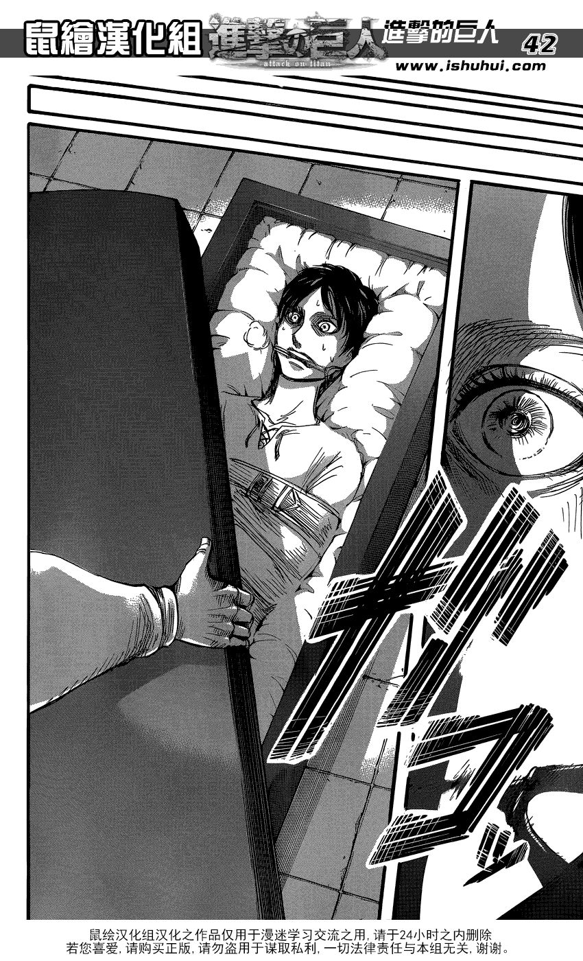 艾伦和希斯托莉娅被送到雷斯家,真正王族的父女相见,也叙述得仓促,我个人最不满意的是场景的随意。漫画中,两人被放在棺材中运到雷斯家,开馆取出的场景,充满阴森诡异,也更符合即将将有重大揭秘的故事氛围。综合艾伦在全作中有着时隐时现的救世主形象,这个从棺材里出来的场景,或许还带有一点宗教意味。