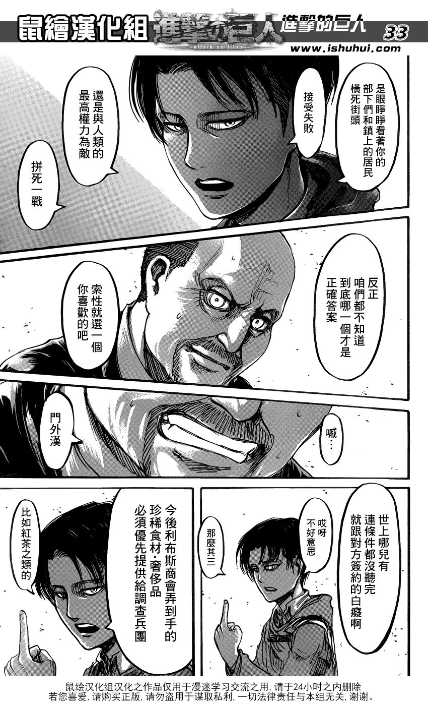 还有像是【今后商会弄到手的珍稀食材,奢侈品,优先供给调查兵团,比如红茶之类的……】的兵长式冷幽默,动画版统统省略,实在可惜。