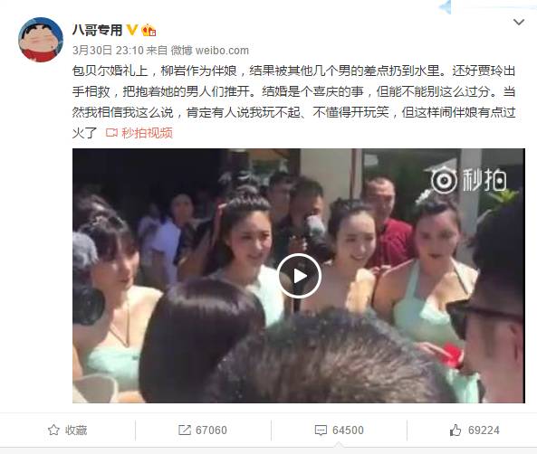昨晚一则包贝尔婚礼闹伴娘的消息刷爆了微博,今天在热搜上挂了一天~