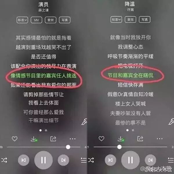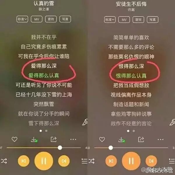 说起来,两人虽同为创作型歌手,但音乐风格却大相径庭。薛之谦最擅长的就是情歌,比如十年前那首传唱度最高的《认真的雪》,以及时下霸榜的《演员》这一类,而许嵩的曲风就更中国风一些,所以也常被打来跟周杰伦做比较。