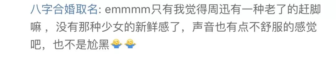 最可气的是黑评有很大的被操控嫌疑,凤凰娱乐、新浪娱乐等几大门户关于周迅嗓音的官微下面排名靠前的评论出奇一致,连字符数和表情都一毛一样,这样真的好么......。
