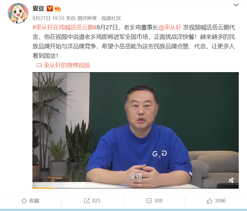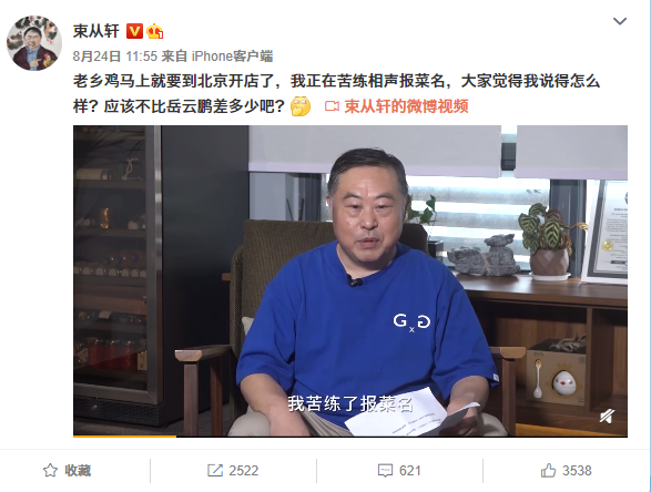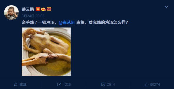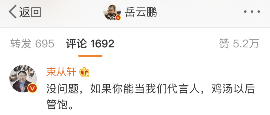 姜还是老的辣,束从轩说,如果小岳岳能当代言人,鸡汤管够!