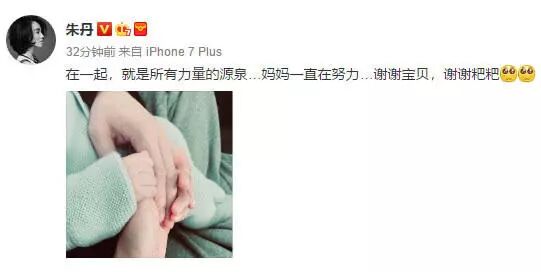 昨日,朱丹晒出一张和老公周一围一起牵宝宝手的照片,并发文称:“在一起,就是所有力量的源泉。”照片中,一家人大手牵小手,十分温情。