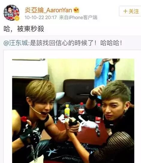 后面两人闹翻后,炎亚纶还曾说汪东城已经不能影响他了。关于两人的传闻也一直没断过。