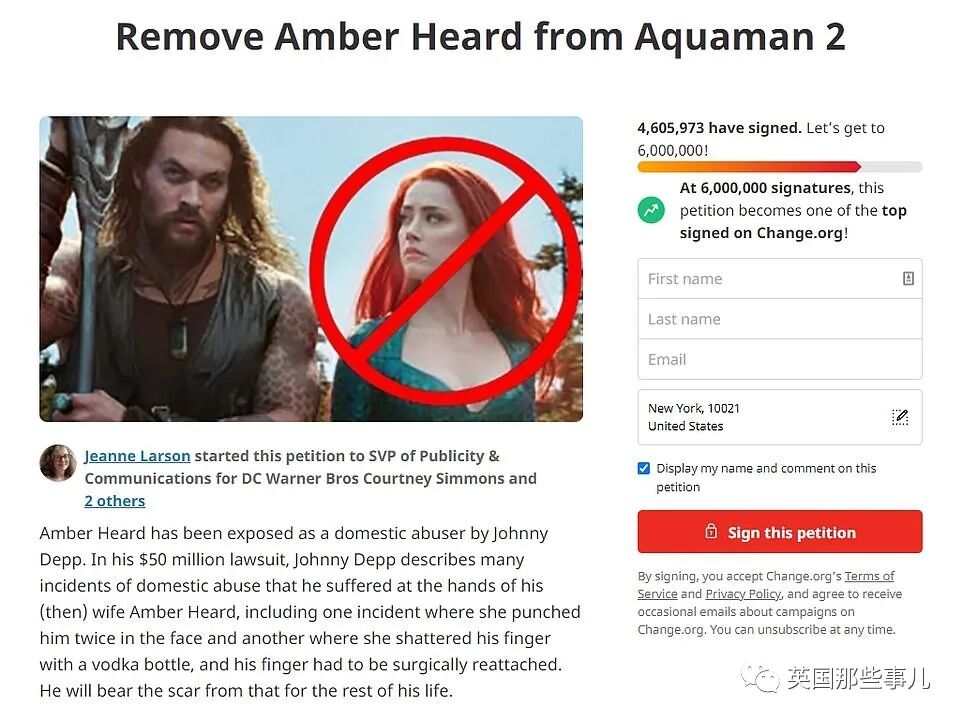 在诉讼结束时,Amber的反对者们就发起了一个请愿活动,致力于将她从《海王2》中除名,