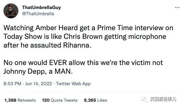 “看着Amber在黄金时间段接受了《今日》的采访,就像看到Chris Brown在攻击Rihanna之后拿到了麦克风。