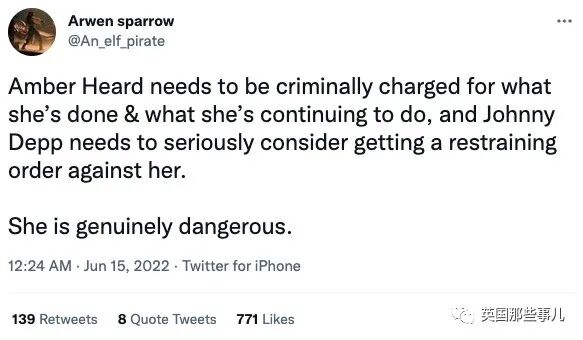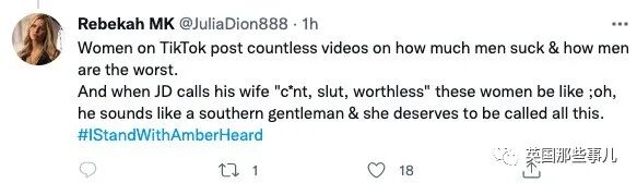 在短视频平台上,为德普寻求正义的标签浏览量高达200亿次,